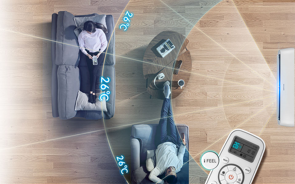 Pulsando el botón “i feel” lograrás un control inteligente de la temperatura y las mejores condiciones de la habitación.