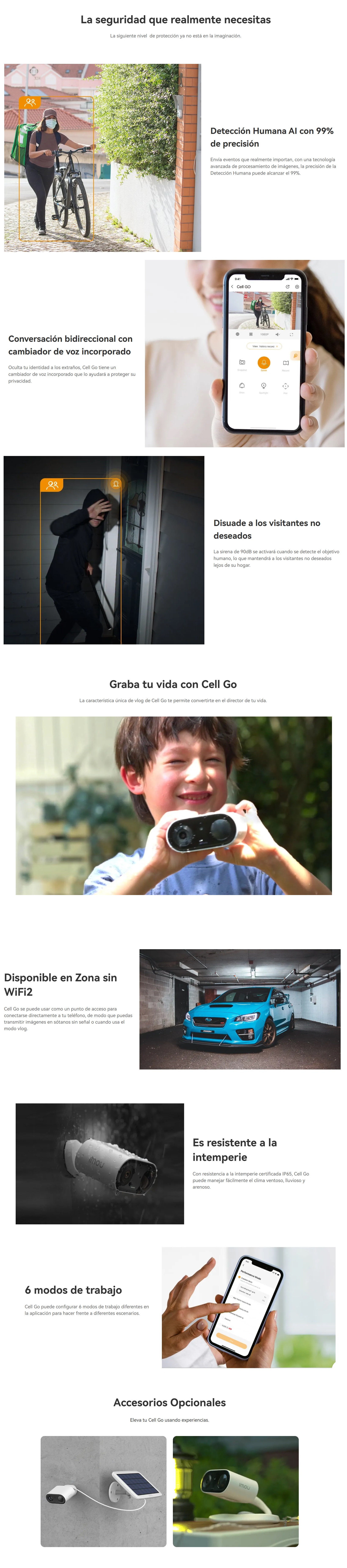 | Cámara Principal | • 3MP (2304 x 1296) • Visión Nocturna: 7m(23ft) de distancia • 2.8mm Lente fijo • Ángulo de visión: 98°(H), 54°(V), 121°(D) |