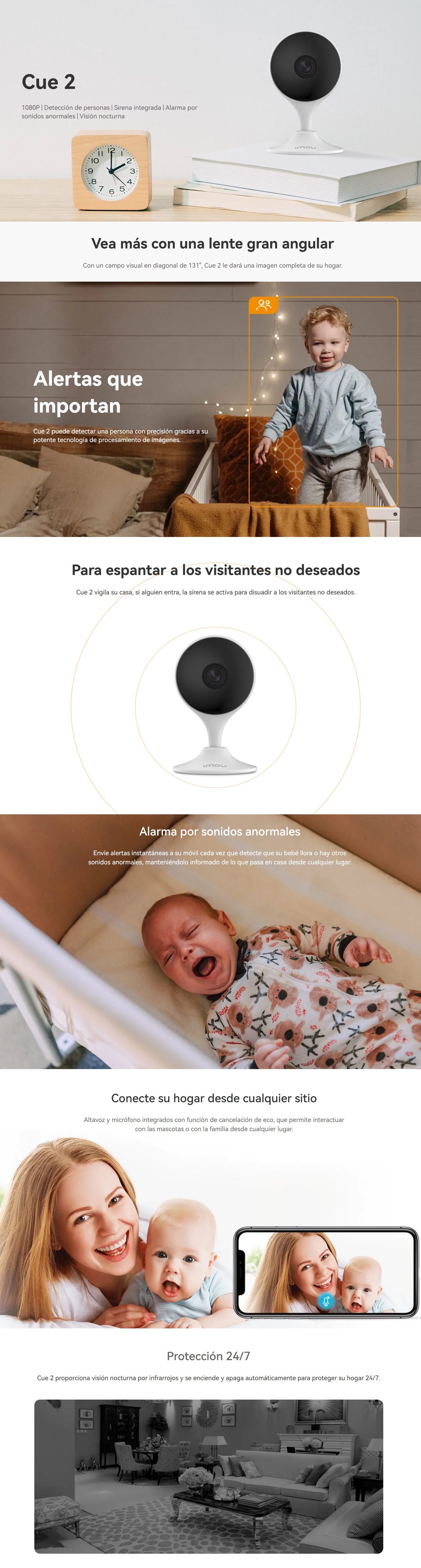| Sensor | - Gestión de avisos • Detección de movimiento • Detección de personas • Zona de detección configurable • Alarma por sonidos anormales |