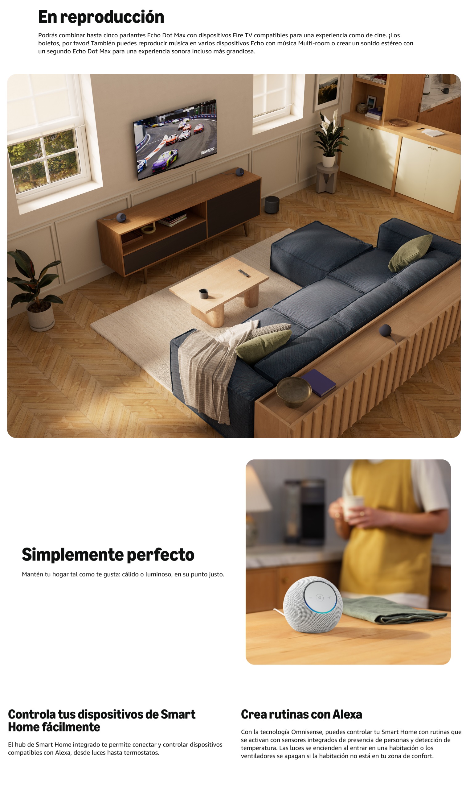 Llevamos al máximo el diseño, el sonido y la funcionalidad de Smart Home en este parlante inteligente con Alexa.