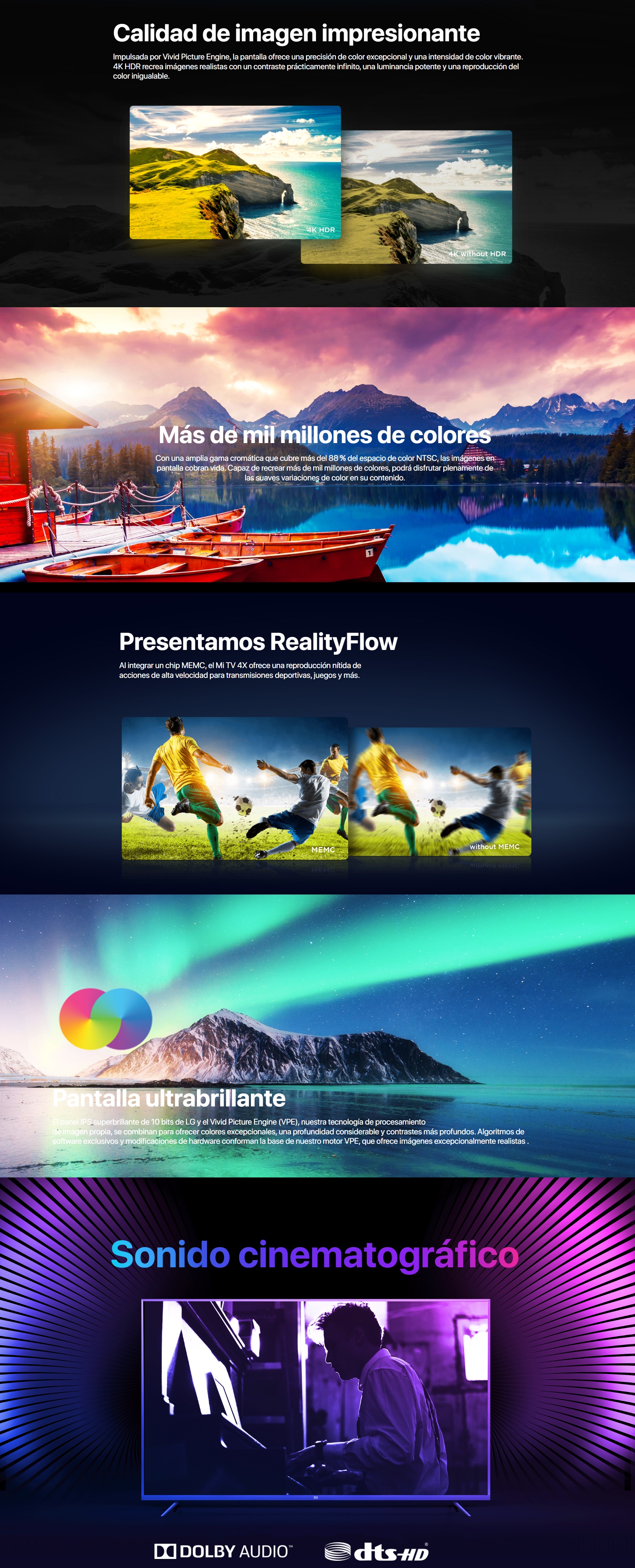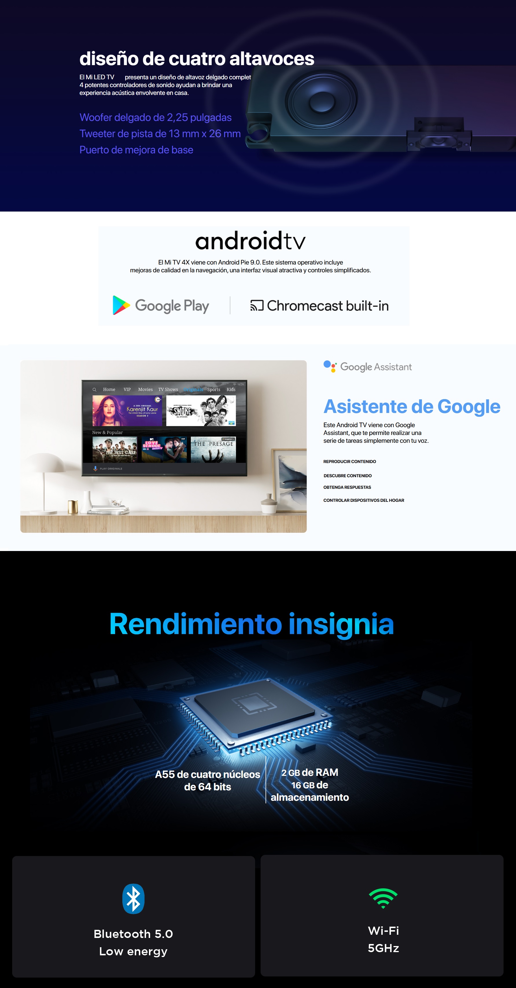 | Audio | Dolby Audio y DTS-HD (10W x4, 6 Ohms) |