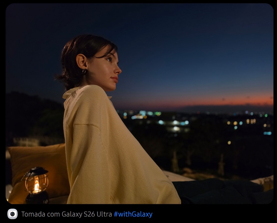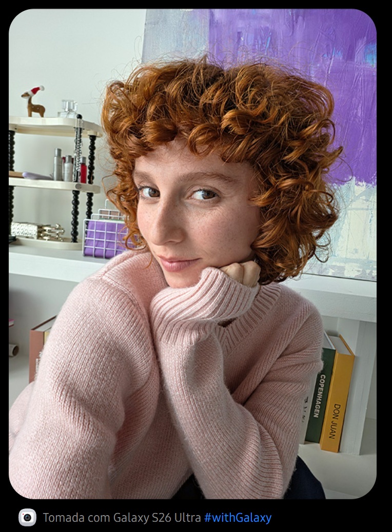 A câmera frontal do Galaxy S26 Ultra agora conta com um processador de sinal de imagem (ISP) com inteligência artificial para selfies mais naturais, com realces e sombras onde deveriam estar, fiéis ao seu tom de pele natural e outros detalhes como cabelo e sobrancelhas, exatamente como seus olhos os veem.