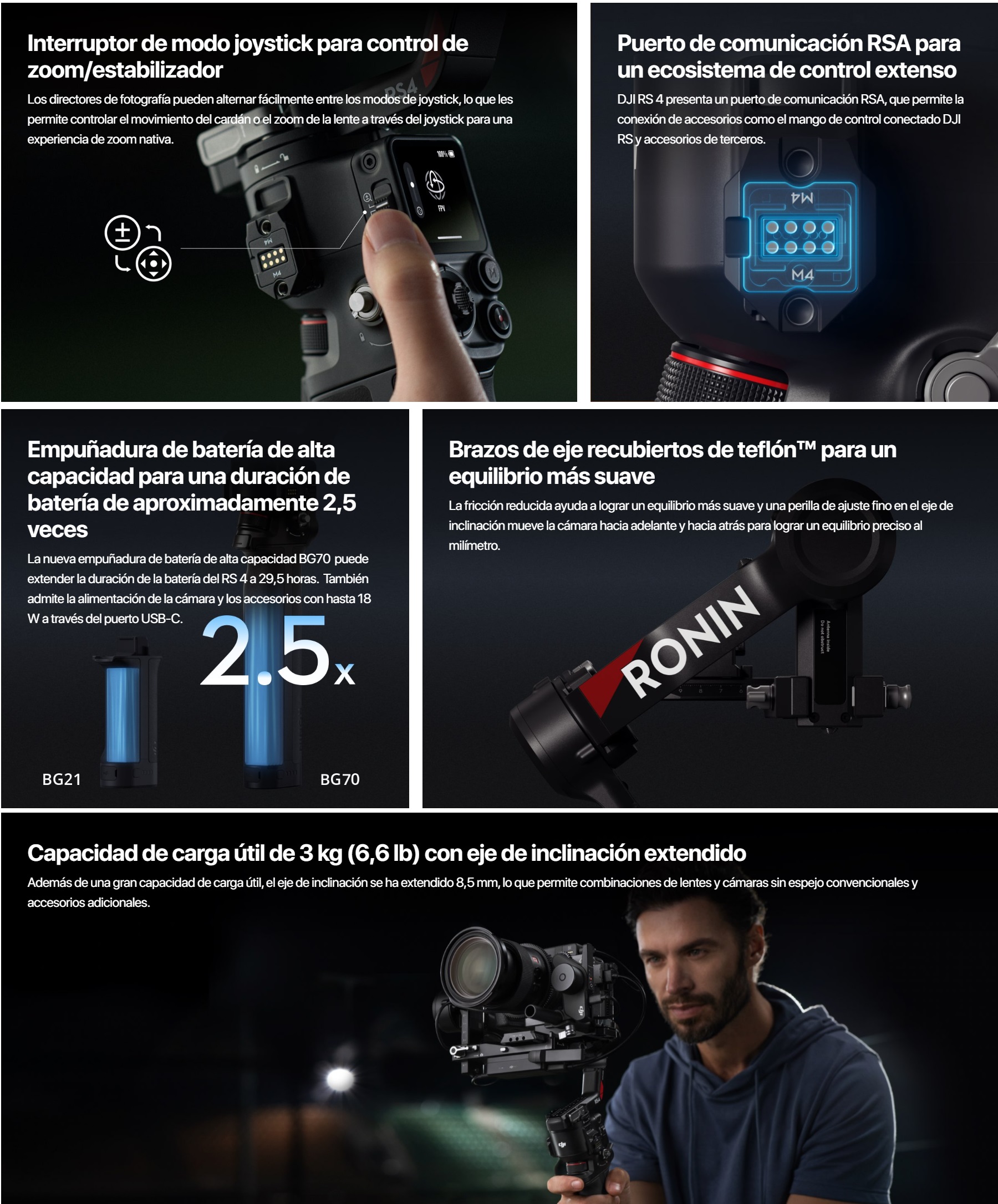 Duración de la batería | DJI RS 4: Aprox. 12 horas | DJI Ronin Image Transmitter: Aprox. 3.5 horas |