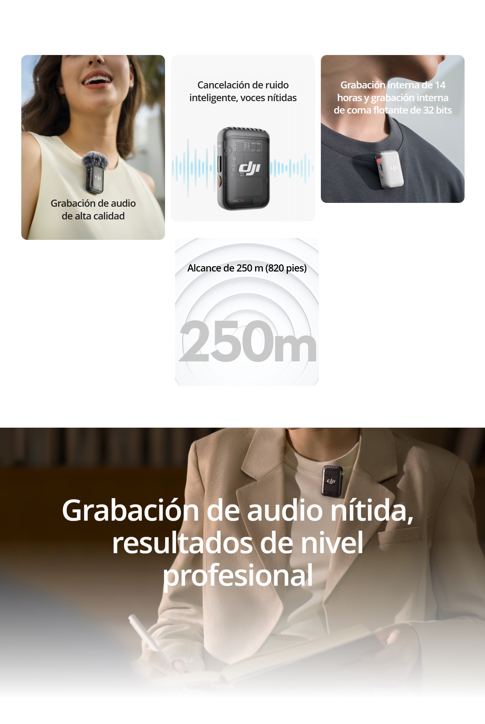 Captura sonidos auténticos con el micrófono inalámbrico actualizado y listo para usar: DJI Mic 2. Con sus características premium, que incluyen grabación de audio de alta calidad, cancelación de ruido inteligente y soporte para grabación interna de punto flotante de 32 bits, nuestro micrófono inalámbrico te permite producir contenido de audio equilibrado y rico en detalles, perfecto para vlogs, entrevistas, transmisiones en vivo y más.