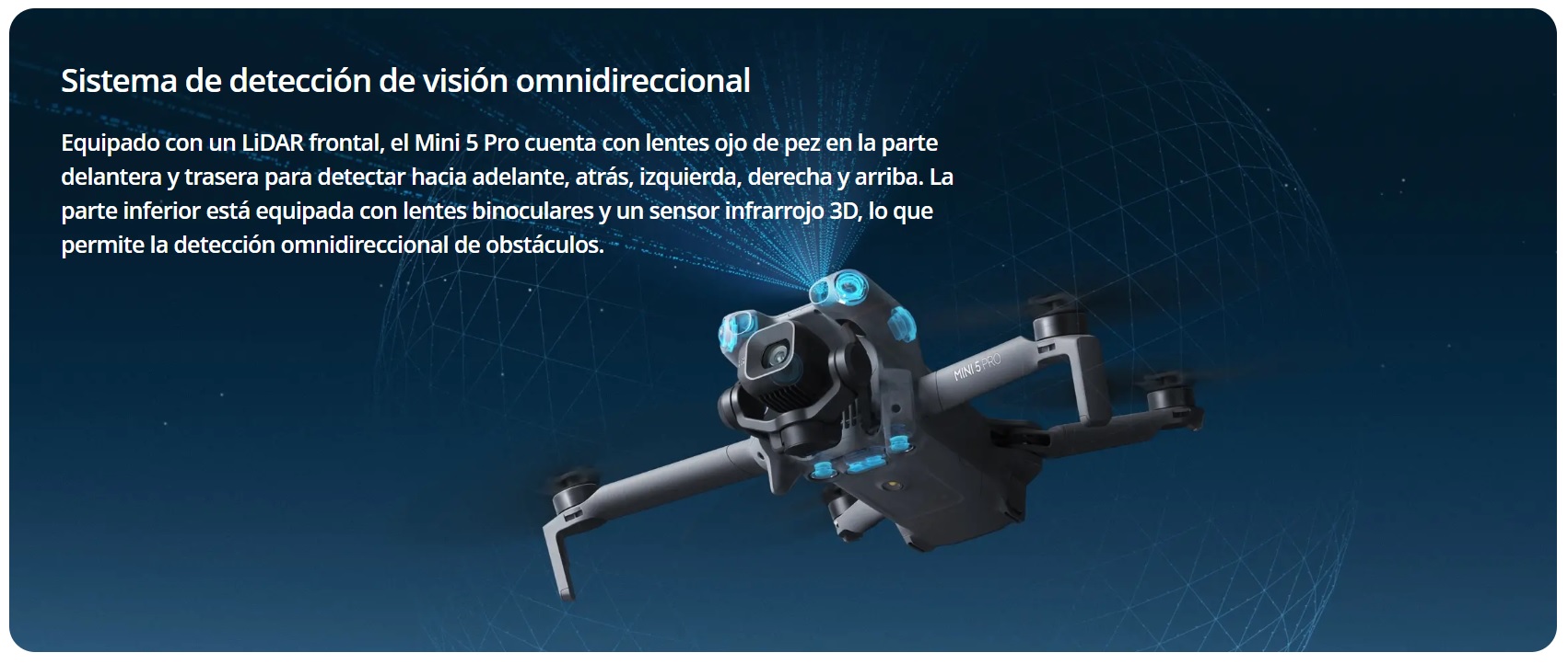 DJI Mini 5 Pro cuenta con una cámara CMOS de 1 pulgada, detección de obstáculos omnidireccional de paisaje nocturno, un gimbal con 225° de rotación flexible, y ActiveTrack actualizado 360°, todo embalado en su cuerpo ligero característico. Con el rendimiento a la par con los drones insignia, captura los hermosos momentos de vida y conserva sus recuerdos atesorados en un detalle impresionante.