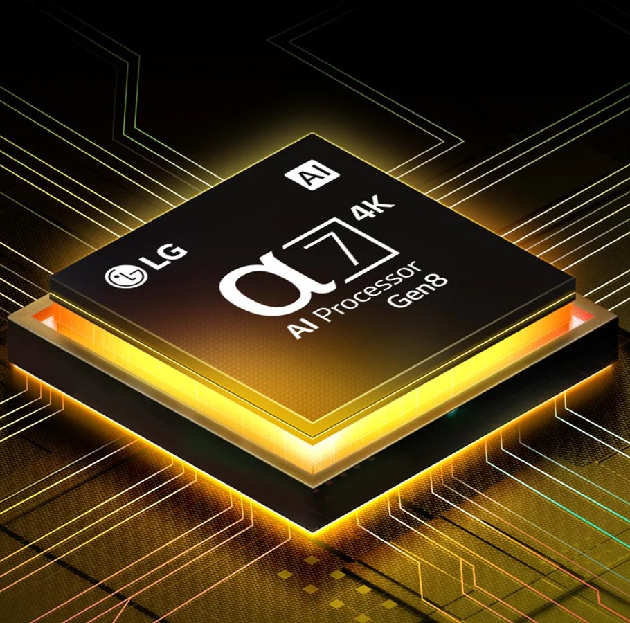 | Audio | • Salida de audio: 20W • Sistema de altavoces: 2.0 Ch • α7 AI Sound Pro (Virtual 9.1.2 Up-mix) • Salida de Audio Simultánea • LG Sonido Sync • Conexión Bluetooth Surround • Afinación acústica de IA • Audio Codec: AC4, AC3(Dolby Digital), EAC3, HE-AAC, AAC, MP2, MP3, PCM, apt-X (Refer to manual) • WOW Orquesta |