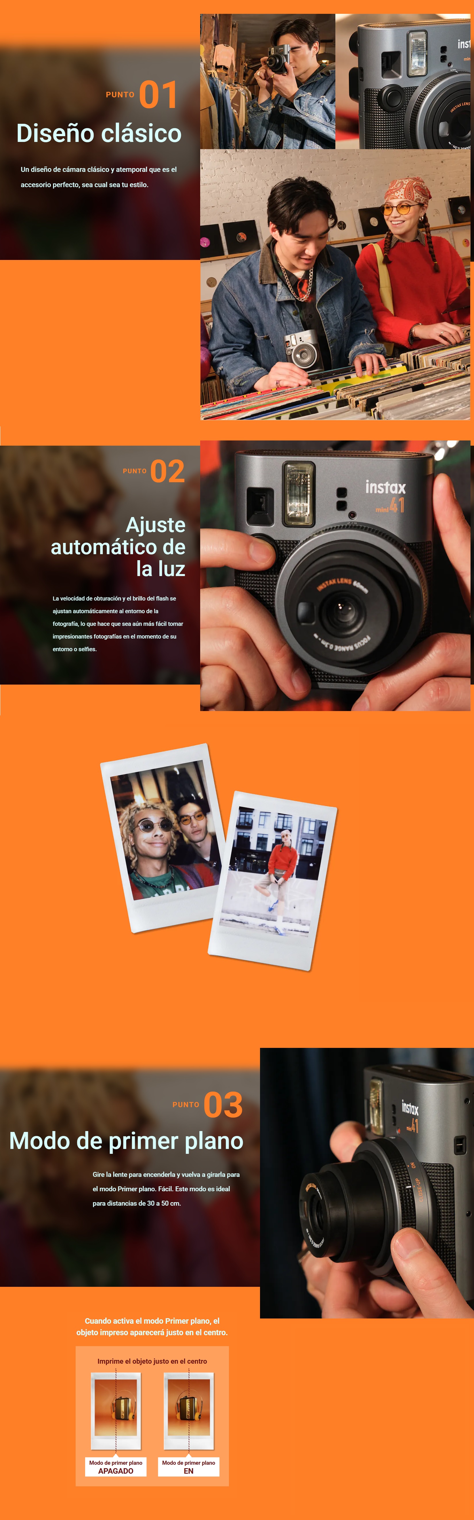 | Incluye | Instax Mini 41 | Correa de mano | 2x pilas AA | Manual |