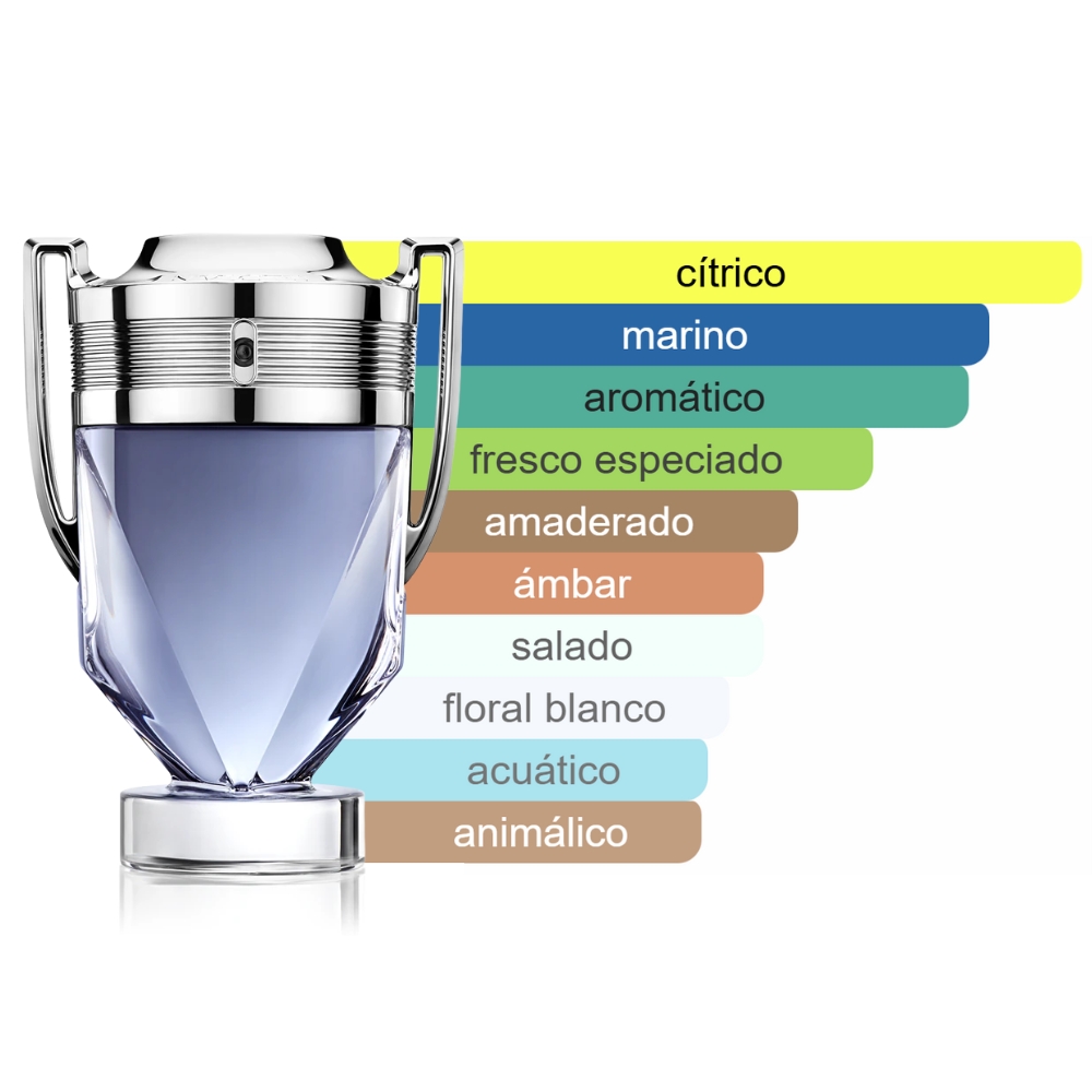 La fragancia masculina de Paco Rabanne. Invictus, el perfume de la victoria. Frescura audaz y sensualidad animal. Un adictivo aroma amaderado fresco.Un perfume masculino heroico amaderado-fresco, que combina notas vibrantes y vigorosas. El Eau de Toilette masculino Invictus encarna dos fuerzas opuestas: una frescura audaz y una calidez animal. Con aires marinos dominantes y soplos de pomelo. Energizados por acordes viriles amaderados. Una fragancia magnética de pachulí, madera de gaiac y ámbar gris. ¡Doble victoria!