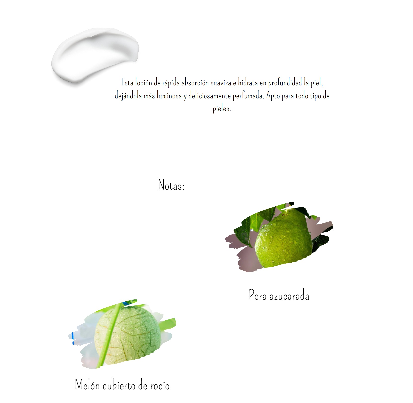 | Características | Loción corporal hidratante y perfumada |