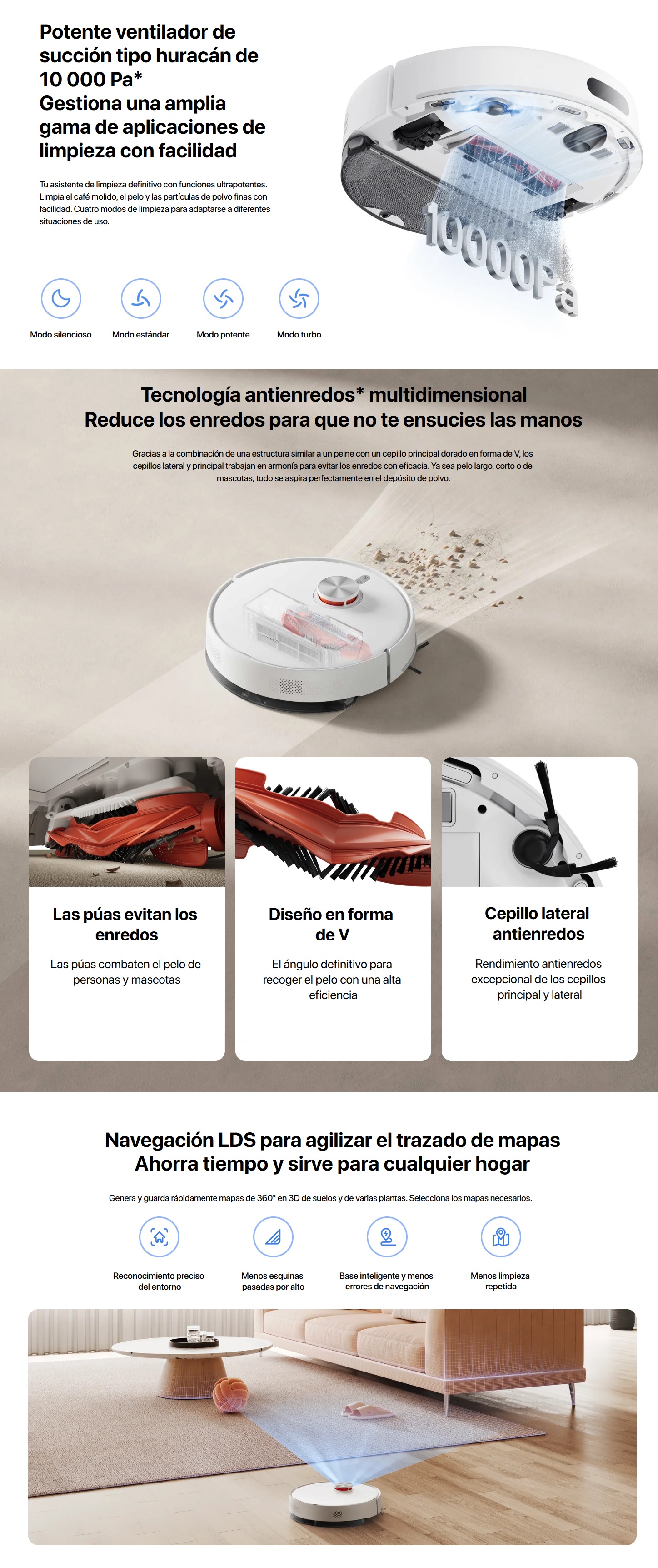 | Ventilador | Ventilador de succión potente de 10000 Pa |