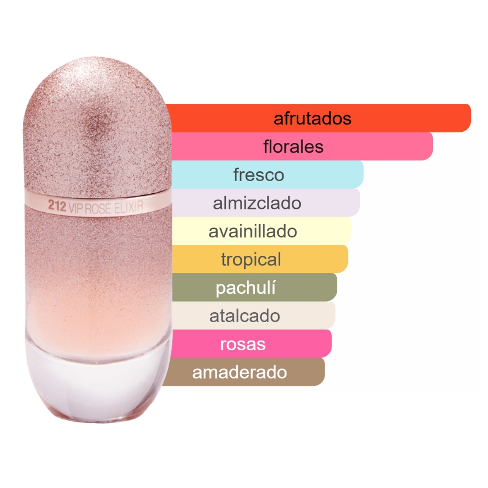 Elixir 212 VIP Rosé es una interpretación sensual y más intensa del icónico 212 VIP Rosé, en un frasco rosa brillante con degradado.