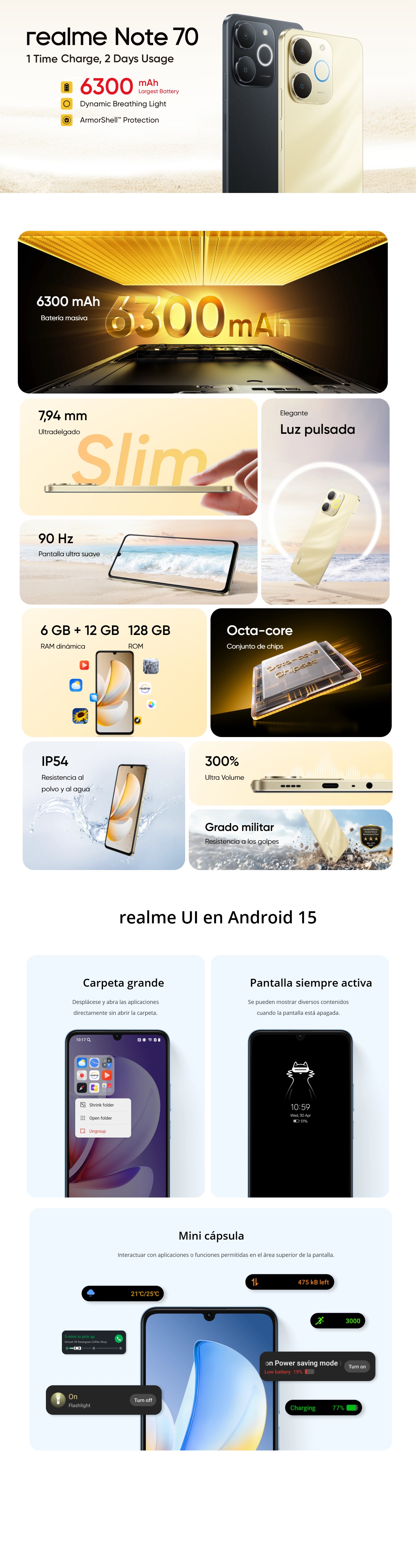 Smartphone Realme Note 70 RMX5313 DS LTE 4/128GB - Beach Gold